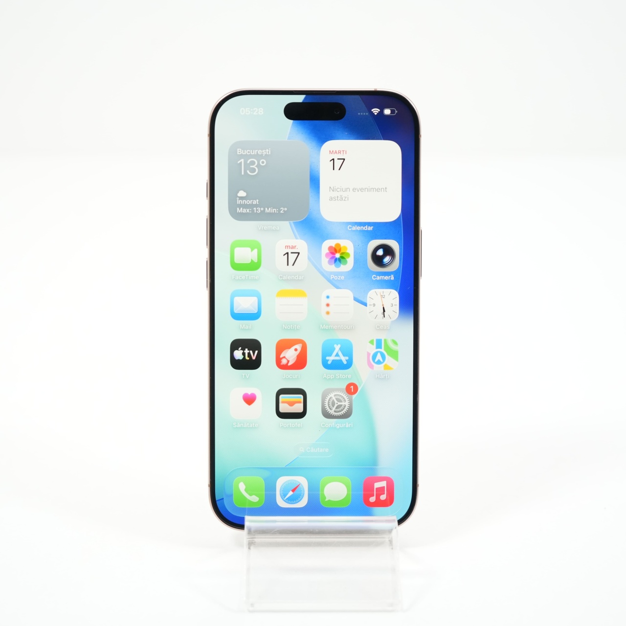 Ecran: OLED de 6.3, Refresh Rate 120 Hz Procesor: Apple A18 Pro Memorie RAM: 8 GB Memorie interna: 256GB Camera Foto: Principala 48 MPx, Frontala 12 MPx Stare retea: Liber de rețea