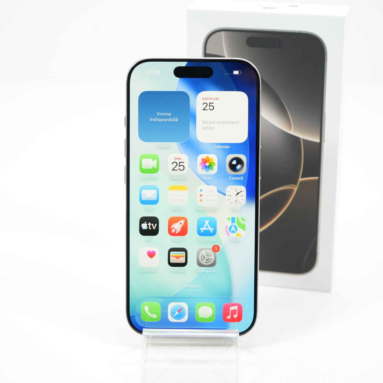 Ecran: OLED de 6.3, Refresh Rate 120 Hz Procesor: Apple A18 Pro Memorie RAM: 8 GB Memorie interna: 256GB Camera Foto: Principala 48 MPx, Frontala 12 MPx Stare retea: Liber de rețea