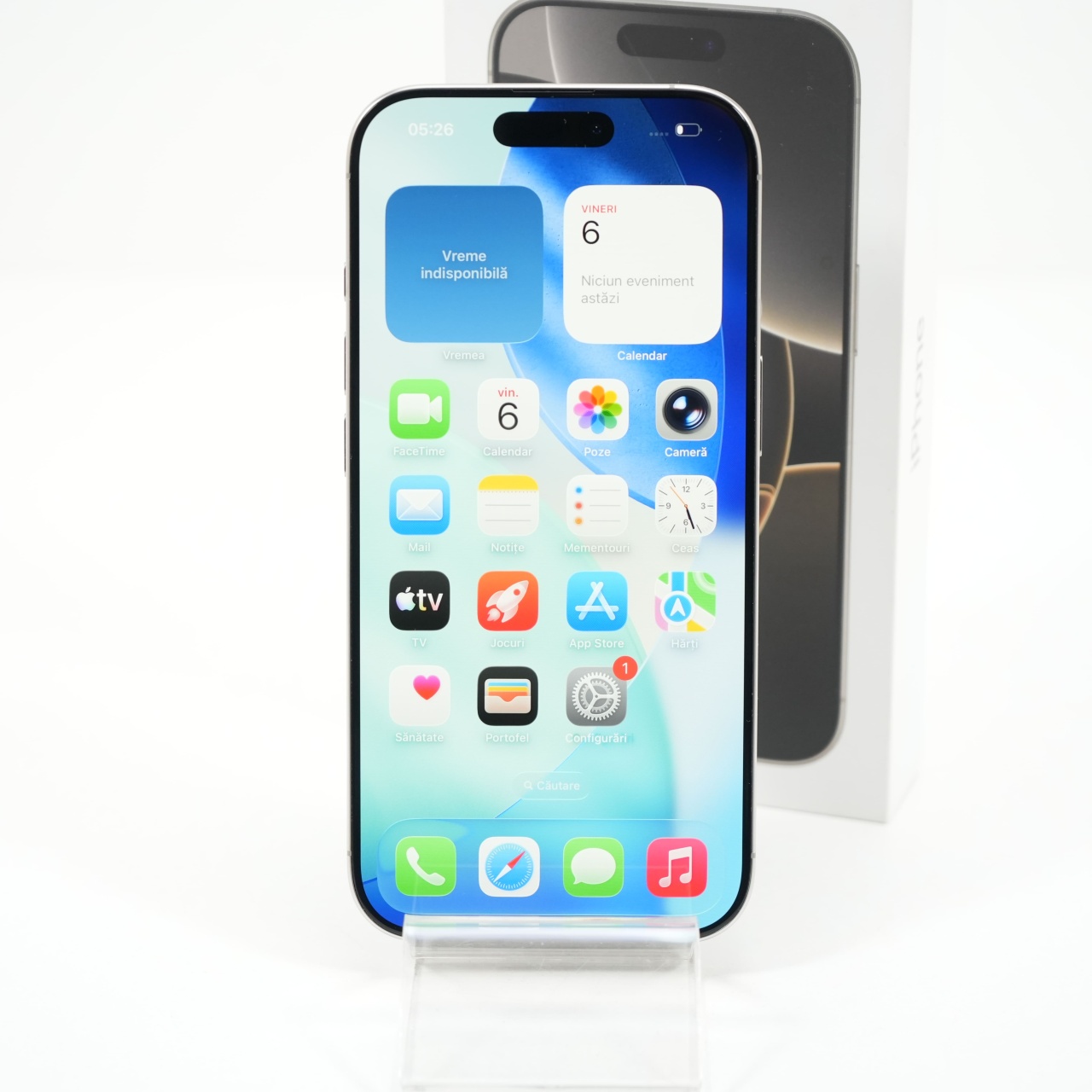 Ecran: OLED de 6.3, Refresh Rate 120 Hz Procesor: Apple A18 Pro Memorie RAM: 8 GB Memorie interna: 256GB Camera Foto: Principala 48 MPx, Frontala 12 MPx Stare retea: Liber de rețea