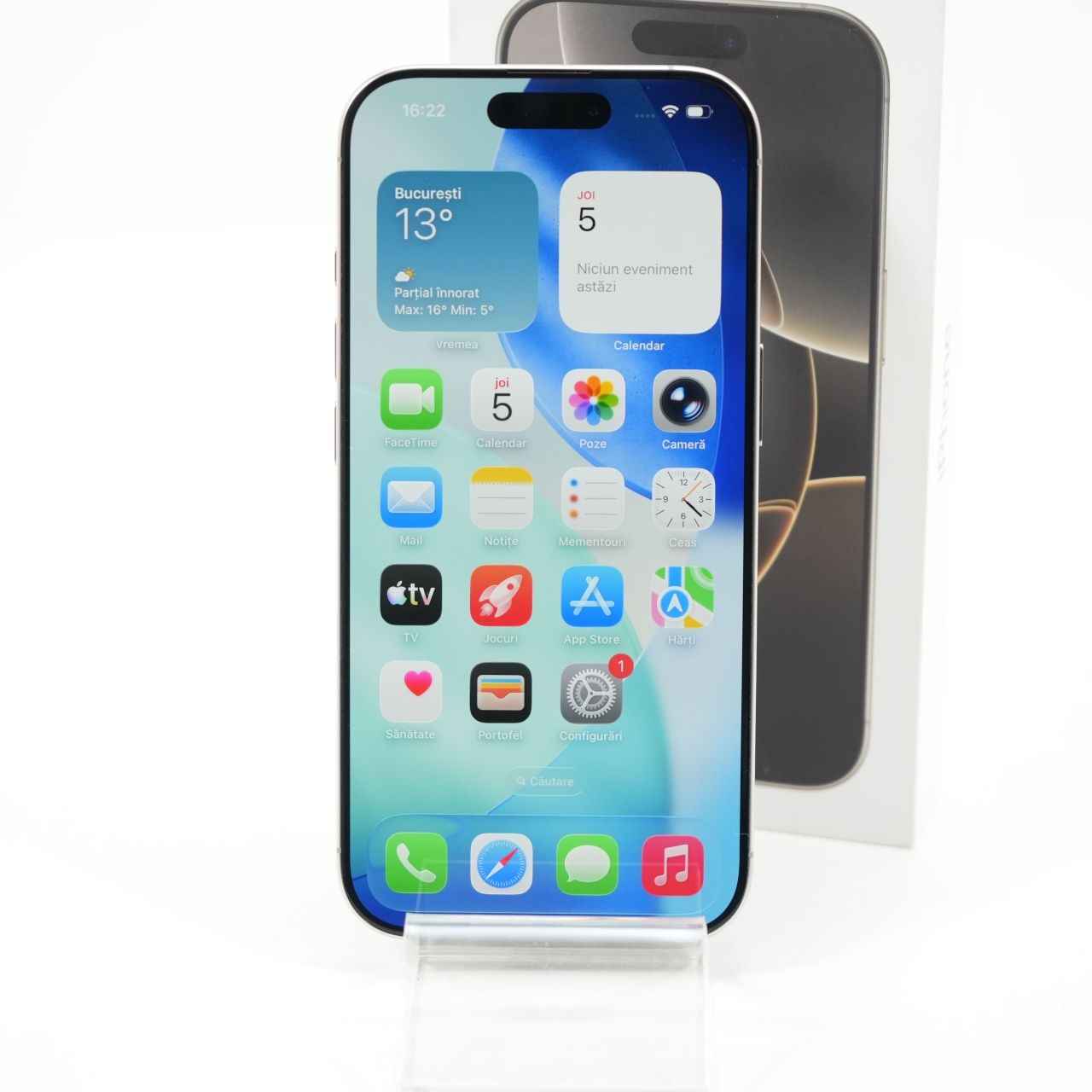 Ecran: OLED de 6.3, Refresh Rate 120 Hz Procesor: Apple A18 Pro Memorie RAM: 8GB Memorie interna: 256GB Camera Foto: Principala 48 MPx, Frontala 12 MPx Stare retea: Liber de rețea