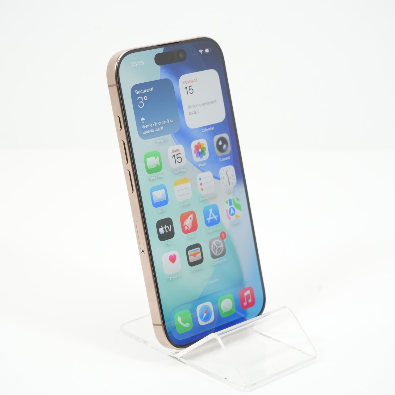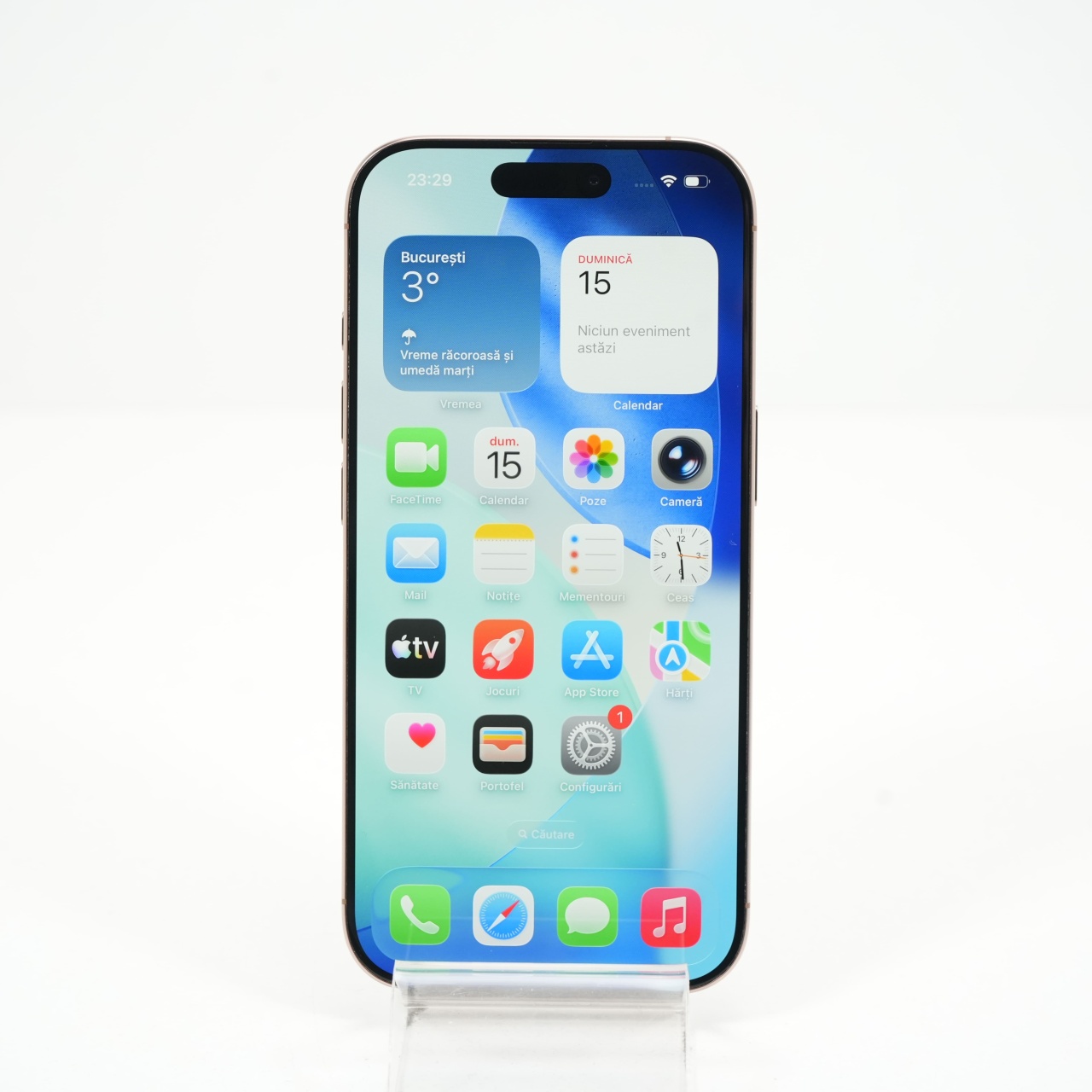 Ecran: OLED 6.3, 120 Hz Procesor: Apple A18 Pro Memorie RAM: 8 GB Memorie interna: 512GB Camera foto: Principala 48 MPx, Frontala 12 MPx Stare retea: Liber de rețea