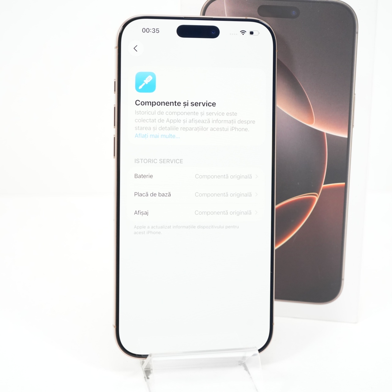 Ecran: OLED de 6.9, Refresh Rate 120 Hz Procesor: Apple A18 Pro Memorie RAM: 8 GB Memorie interna: 1TB Camera Foto: Principala 48 MPx, Frontala 12 MPx Stare retea: Liber de rețea Afisaj, baterie, placa de baza - componente originale