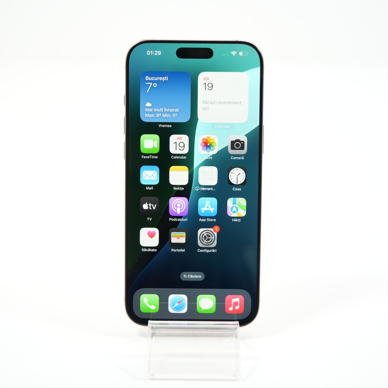 Ecran: OLED de 6.9, Refresh Rate 120 Hz Procesor: Apple A18 Pro Memorie RAM: 8 GB Memorie interna: 256GB Camera Foto: Principala 48 MPx, Frontala 12 MPx Stare retea: Liber de rețea Accesorii: Cablu de alimentare