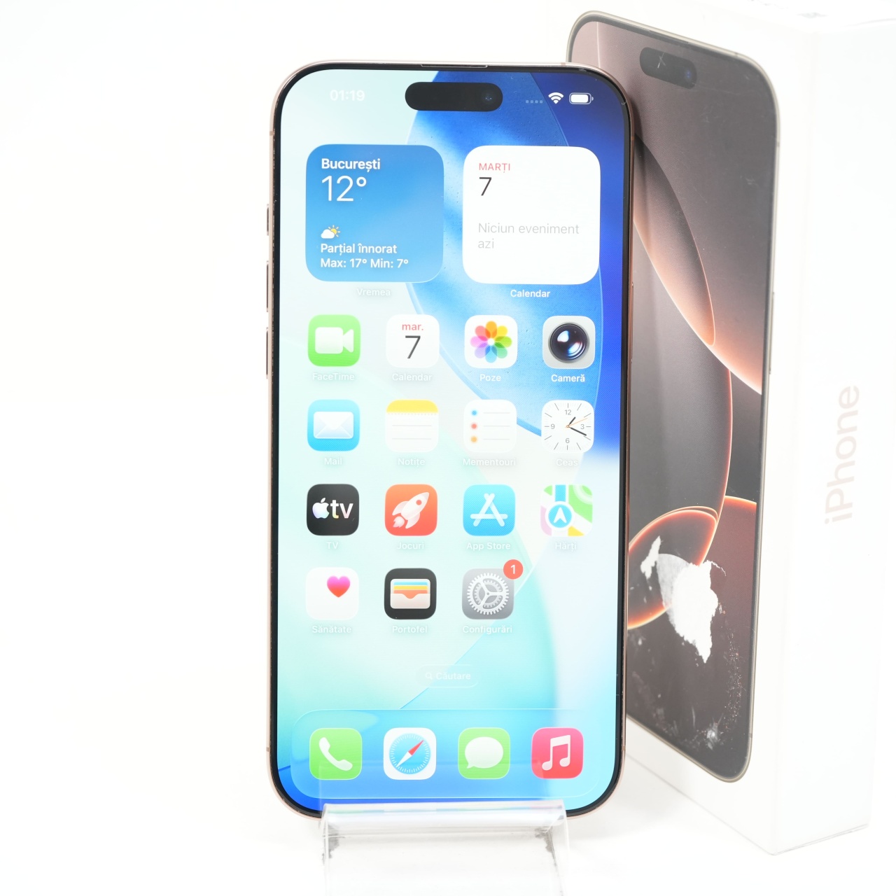 Ecran: OLED de 6.9, Refresh Rate 120 Hz Procesor: Apple A18 Pro Memorie RAM: 8GB Memorie interna: 256GB Camera Foto: Principala 48 MPx, Frontala 12 MPx Stare retea: Liber de rețea