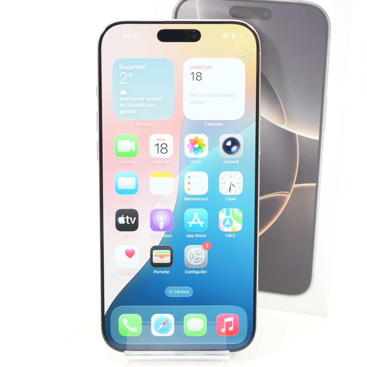Ecran: OLED de 6.9, Refresh Rate 120 Hz Procesor: Apple A18 Pro Memorie RAM: 8GB Memorie interna: 256GB Camera Foto: Principala 48 MPx, Frontala 12 MPx Stare retea: Liber de retea, Liber de rețea