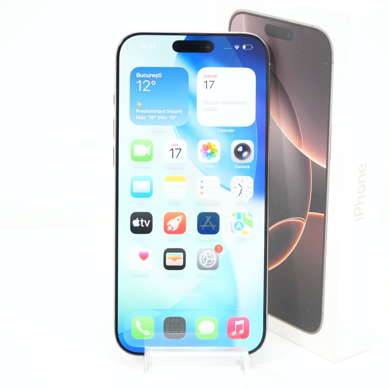 Ecran: OLED de 6.9, Refresh Rate 120 Hz Procesor: Apple A18 Pro Memorie RAM: 8 GB Memorie interna: 256GB Camera Foto: Principala 48 MPx, Frontala 12 MPx Stare retea: Liber de rețea
