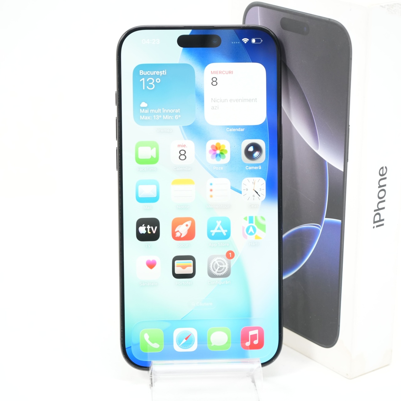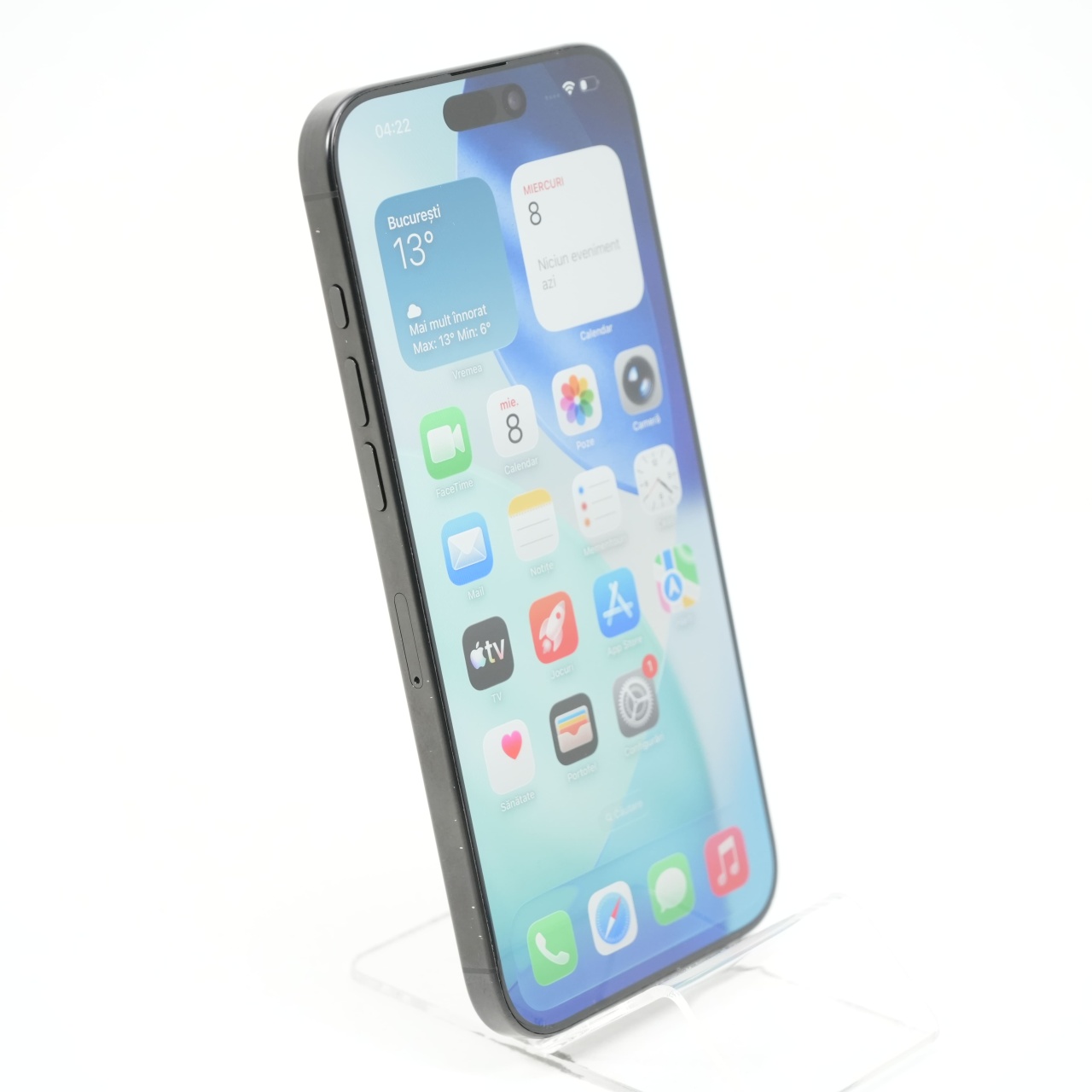 Ecran: OLED de 6.9, Refresh Rate 120 Hz Procesor: Apple A18 Pro Memorie RAM: 8GB Memorie interna: 512GB Camera Foto: Principala 48 MPx, Frontala 12 MPx Stare retea: Liber de rețea
