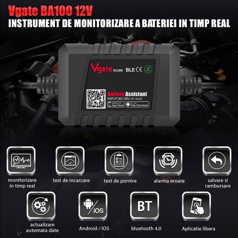 | Tester Bluetooth pentru monitorizare a bateriei auto Vgate BA100 6V-20V compatibil IOS / Android • techstar.ro | 79.98 RON |