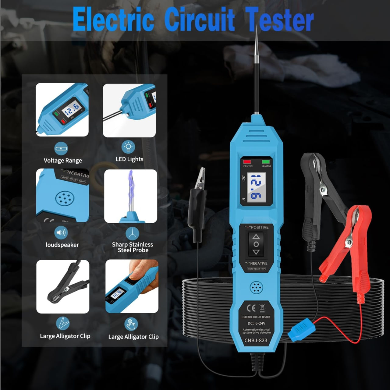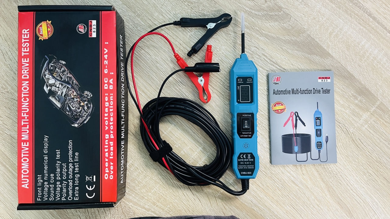 _x000D_Testerul de tensiune auto Techstar® 823 este un dispozitiv multifunctional profesional pentru verificarea rapida a circuitelor electrice in vehicule cu tensiune DC 6V pana la 24V. Ideal pentru diagnosticarea firelor, sigurantelor, alimentarii accesorii si verificarea polaritatii._x000D_Functii principale:✅ Masurare tensiune 6V–24V✅ Detectie polaritate (afisaj LED verde/rosu)✅ Afisaj LCD digital cu iluminare albastra✅ Test activ de semnal pozitiv sau negativ✅ Indicator luminos LED pentru lucrul in zone intunecate✅ Alarma sonora (buzzer)✅ Protectie la suprasarcina 8A✅ Sonda ascutita din otel inoxidabil✅ Clipsuri mari tip crocodil pentru conectare rapida✅ Cablu lung de 4.5 metri pentru acces facil in compartimentul motor_x000D_Continut pachet:_x000D__x000D__x000D_1x Tester circuit electric CNBJ-823_x000D__x000D__x000D_1x Cablu extensie 4.5 metri_x000D__x000D__x000D_1x Sonda detasabila_x000D__x000D__x000D_2x Clipsuri baterie (rosu + negru)_x000D__x000D__x000D_1x Manual utilizare_x000D__x000D__x000D_Specificatii tehnice:_x000D__x000D__x000D_Tensiune operare: DC 6–24V_x000D__x000D__x000D_Curent maxim suportat: 8A_x000D__x000D__x000D_Precizie: ±2%_x000D__x000D__x000D_Temperatura lucru: -10°C pana la 60°C_x000D__x000D__x000D_Umiditate relativa admisa: ≤80%_x000D__x000D__x000D_Dimensiune tester: 26cm x 2.8cm x 4cm_x000D__x000D__x000D_Lungime cablu: 450cm_x000D__x000D__x000D_Compatibil cu:Toate vehiculele 6V / 12V / 24V: autoturisme, camioane, motociclete, rulote, ATV-uri etc._x000D__x000D__x000D_