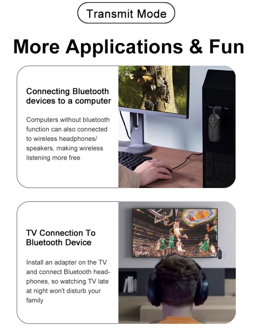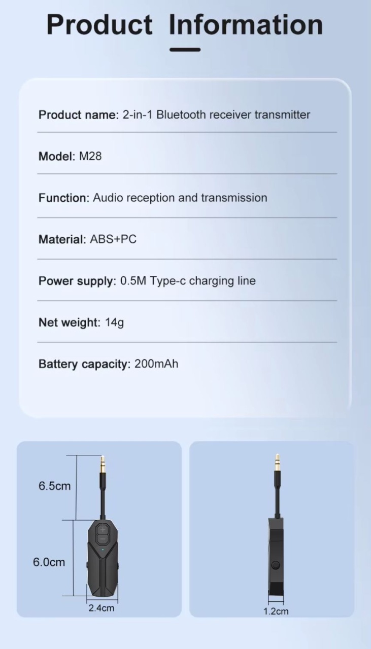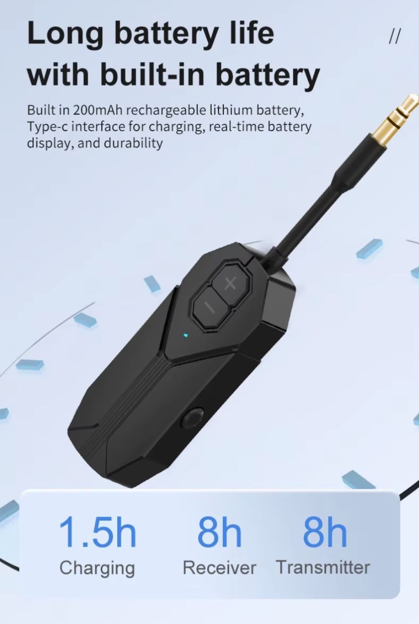 Transmitator si Receptor Audio Techstar M126 cu Bluetooth 5.4, Wireless, Portabil, Compatibil TV, PC, Boxe, Casti, Aux 3.5mm, Baterie Reincarcabila, Dual Mode TX/RX, Negru