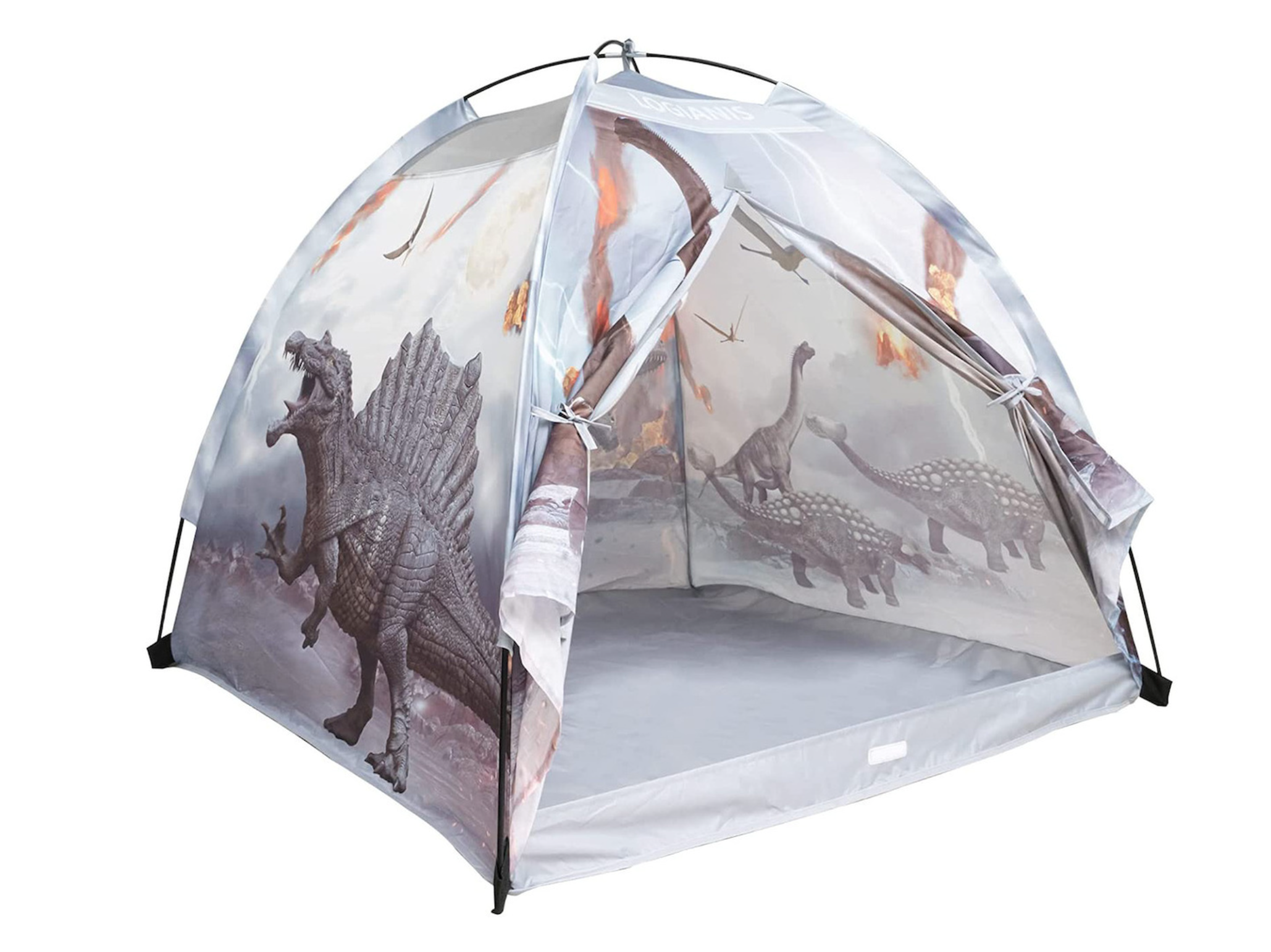 O cort de joacă unic cu dinozauri, perfect pentru ore nesfârșite de distracție. Poate fi folosit atât în interior, cât și în exterior, precum și ca umbră pe plajă. + ABTIBILDE CU DINOZAURI
