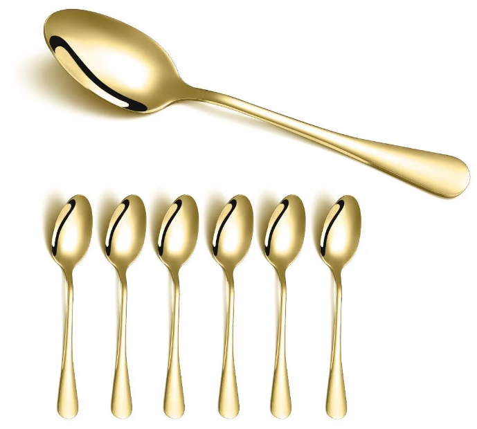 Set 6 linguri din inox Piesele componente sunt fabricate din otel inoxidabil placat, care confera suprafetelor duritate, rezistenta si culori intense. Usor de curatat, manual sau se pot curata in masina de spalat vase.