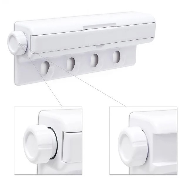 Pentru baie, balcon sau orice alt loc unde doriti sa uscati rufele, acest uscator poate fi folosit oricand aveti nevoie, iar cand acesta nu e folosit poate fi strans pentru a nu incurca. Mod de utilizare: Se prind de pereti opusi cele doua capete ale uscatorului, se regleaza tensiunea sforilor de rufe, si se blocheaza rotita din lateral pentru ca sforile sa nu se lase. Uscatorul este compus din 4 sfori ce pot fi intinse pana la 3 metri (maxim) si suporta aproximativ 40 de articole puse la uscat.
