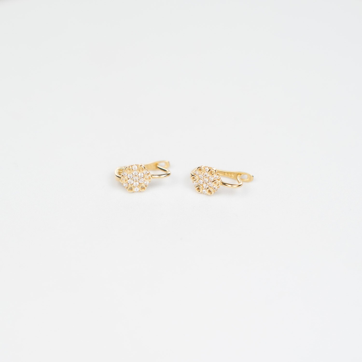Cercei copii/bebe - Model Flower - Aur Galben 14K - Cubic Zirconia - Inchizatoare sigura cu tortita