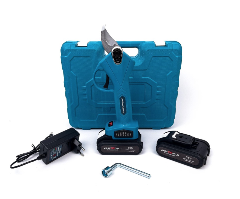 Foarfeca de gradina Kraftworld cu 2 acumulatori pentru vita de vie si crengi 36V Albastru