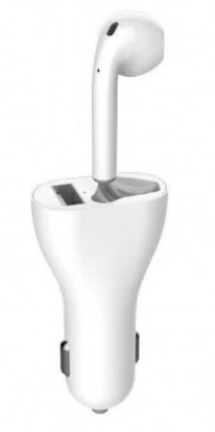 Incarcator auto cu casca wireless inclusa conectare bluetooth Alb