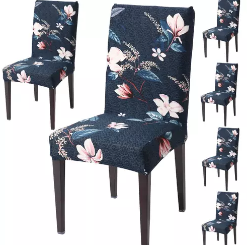 Set 6 huse pentru scaun model Albastru inchis cu flori CC-48