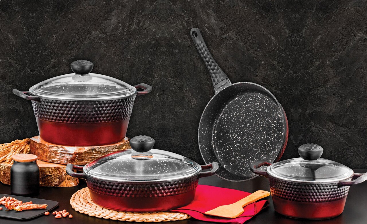 Set vase pentru gatit, Hermia, 357NYP1114, Ghiveci 2: 24 cm / 6,5 l (1 bucată), Rosu
