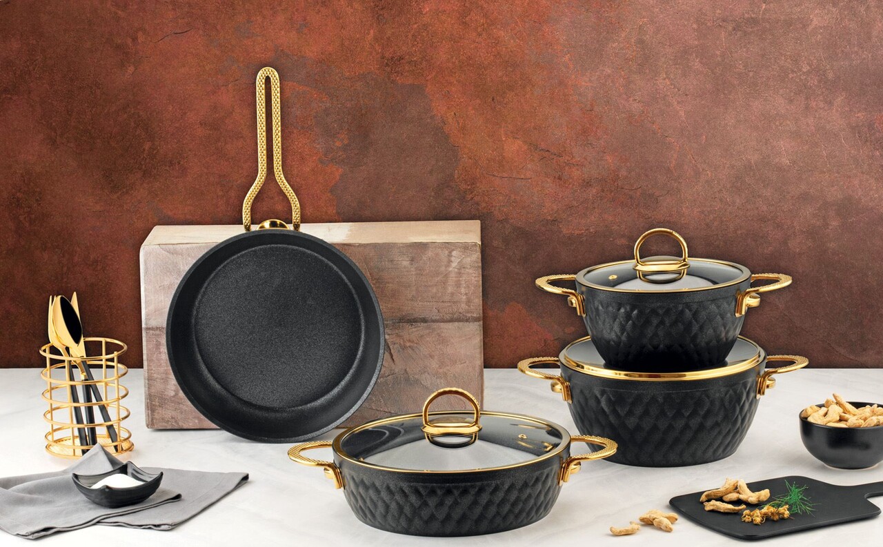 Set vase de gatit, Hermia, 357NYP1115, Dimensiune tigaie: 24 x 24 cm (1 bucată) , Negru