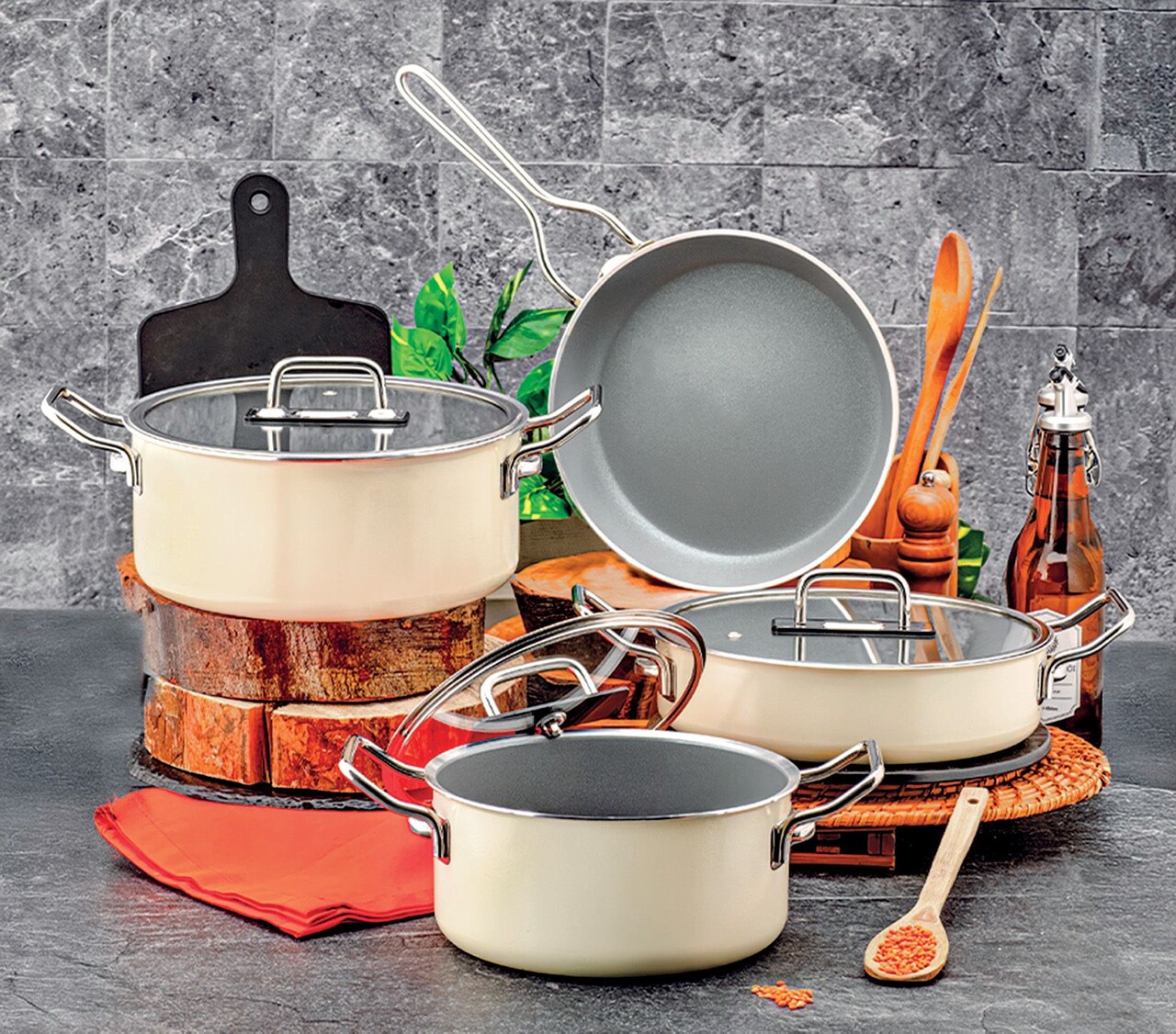 Set vase pentru gatit, Hermia, 357NYP1110, Ghiveci 2: 24 cm / 6,5 l (1 bucată), Crem