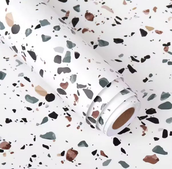 Folie Autocolanta TopBazar pentru Bucatarie, Tip Sticker Autoadeziv, pentru Blat, Mobila, Perete, diverse suprafete, Alb multicolor, 60 x 500 cm,