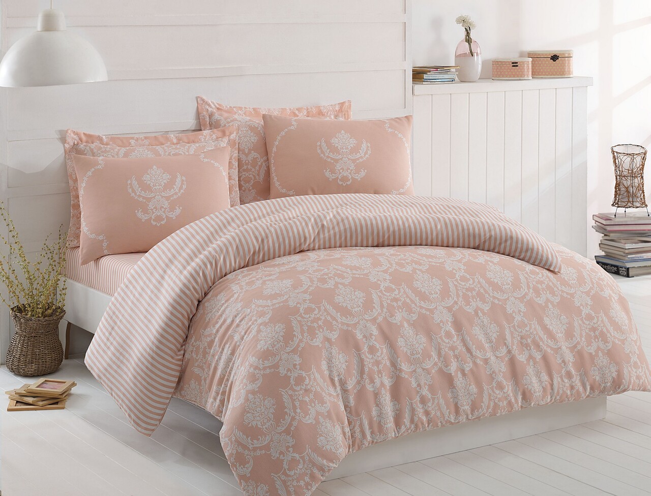 Lenjerie de pat dubla (DE), 3 piese, Lessentiel Maison, Pure, Pulbere / Alb
