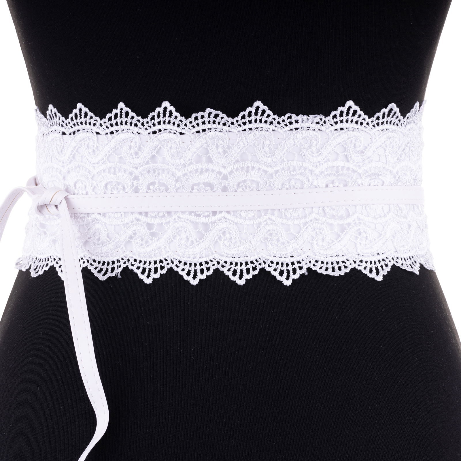 Curea lata de 8 cm petrecuta cu aplicatie din broderie textila, alba