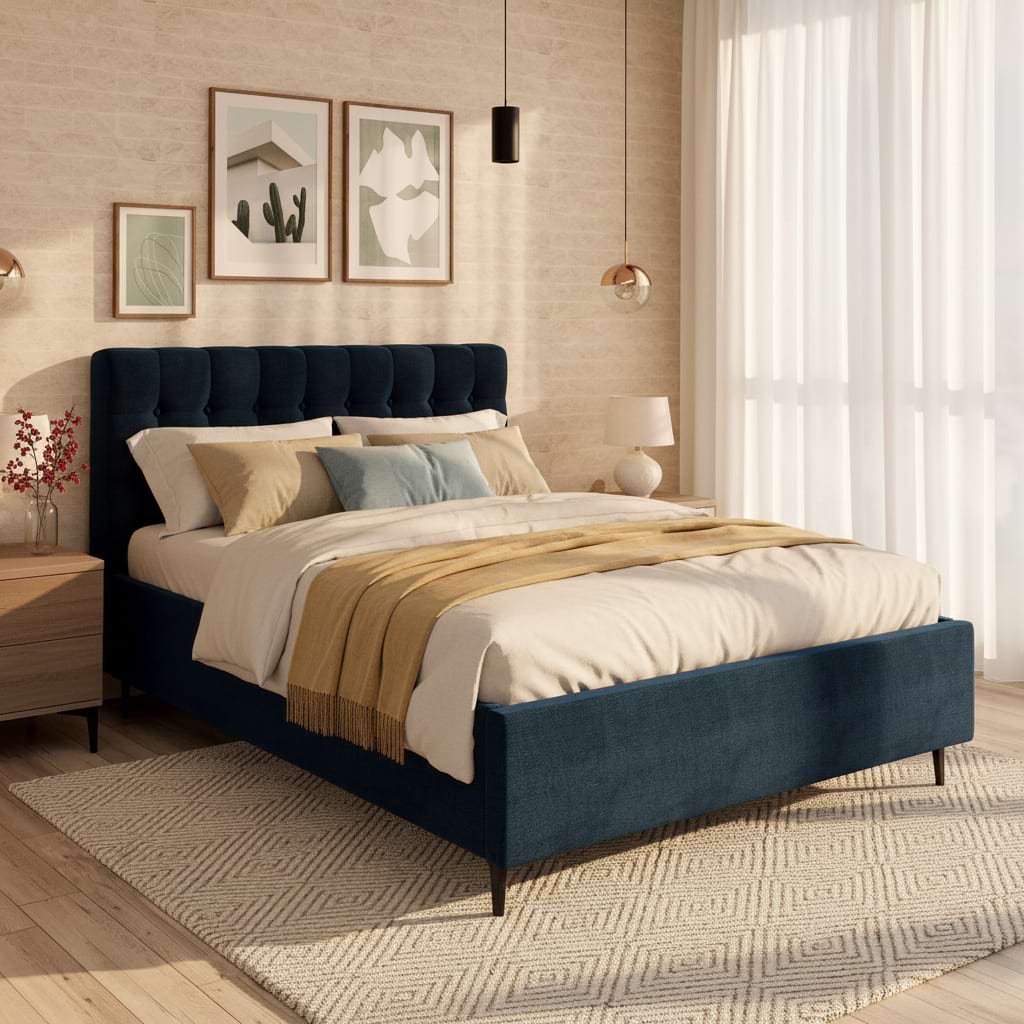 Pat tapitat GEORGIA Pro, 140x200, H116, somiera, Stofa Albastru V73