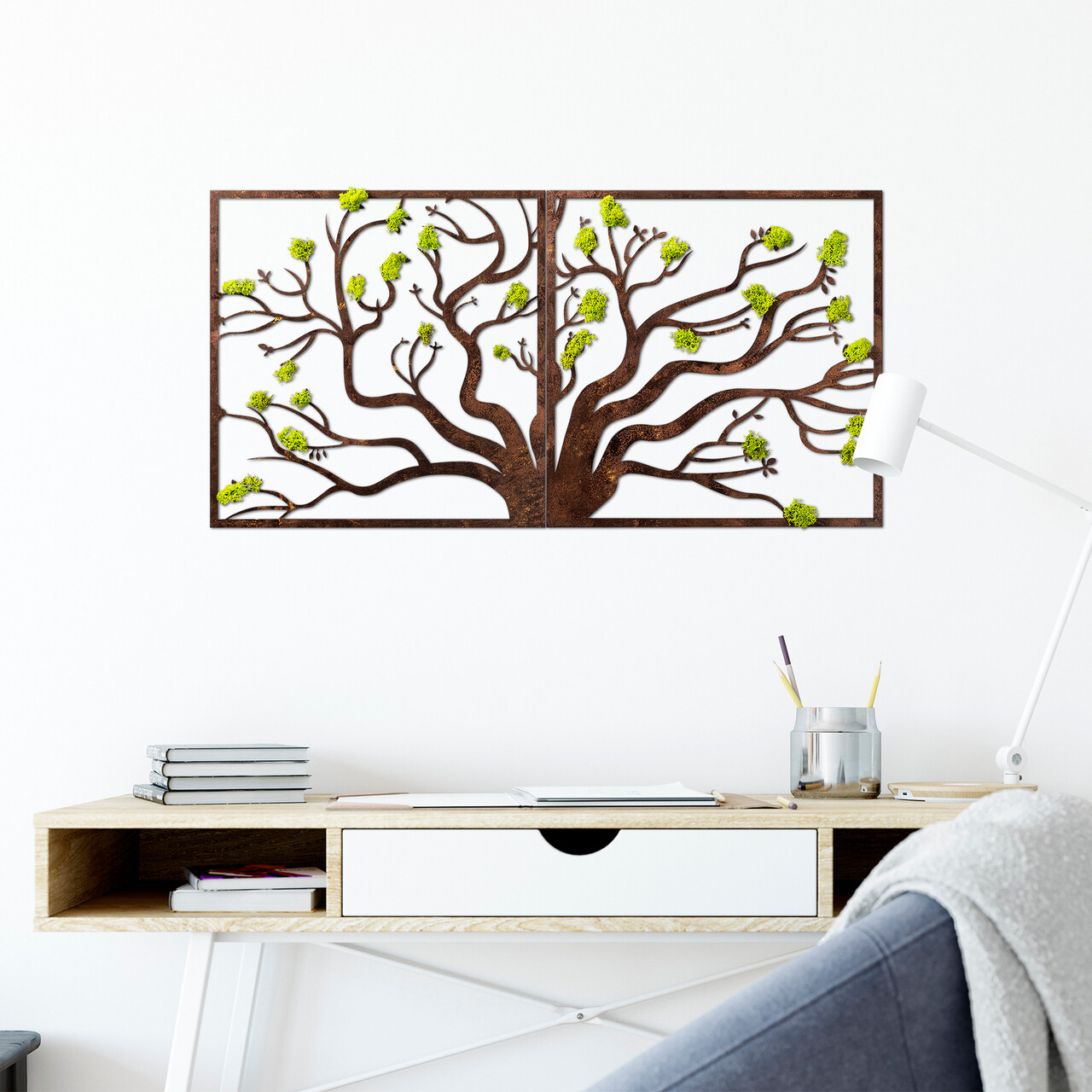 Decoratiune de perete, Tree 1, Dimensiuni: 90 x 1 x 44 cm, Verde/Maro