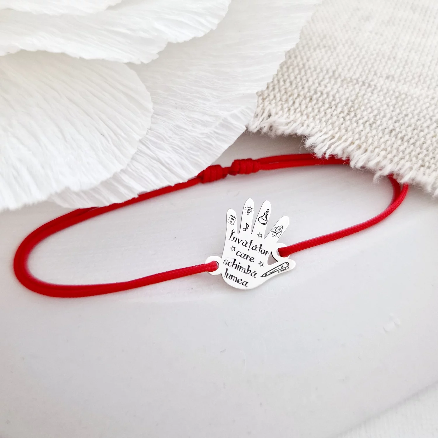 Bratara Mana premiata de Educatoare/Invatatoare - Argint 925 - Snur reglabil, diverse culori