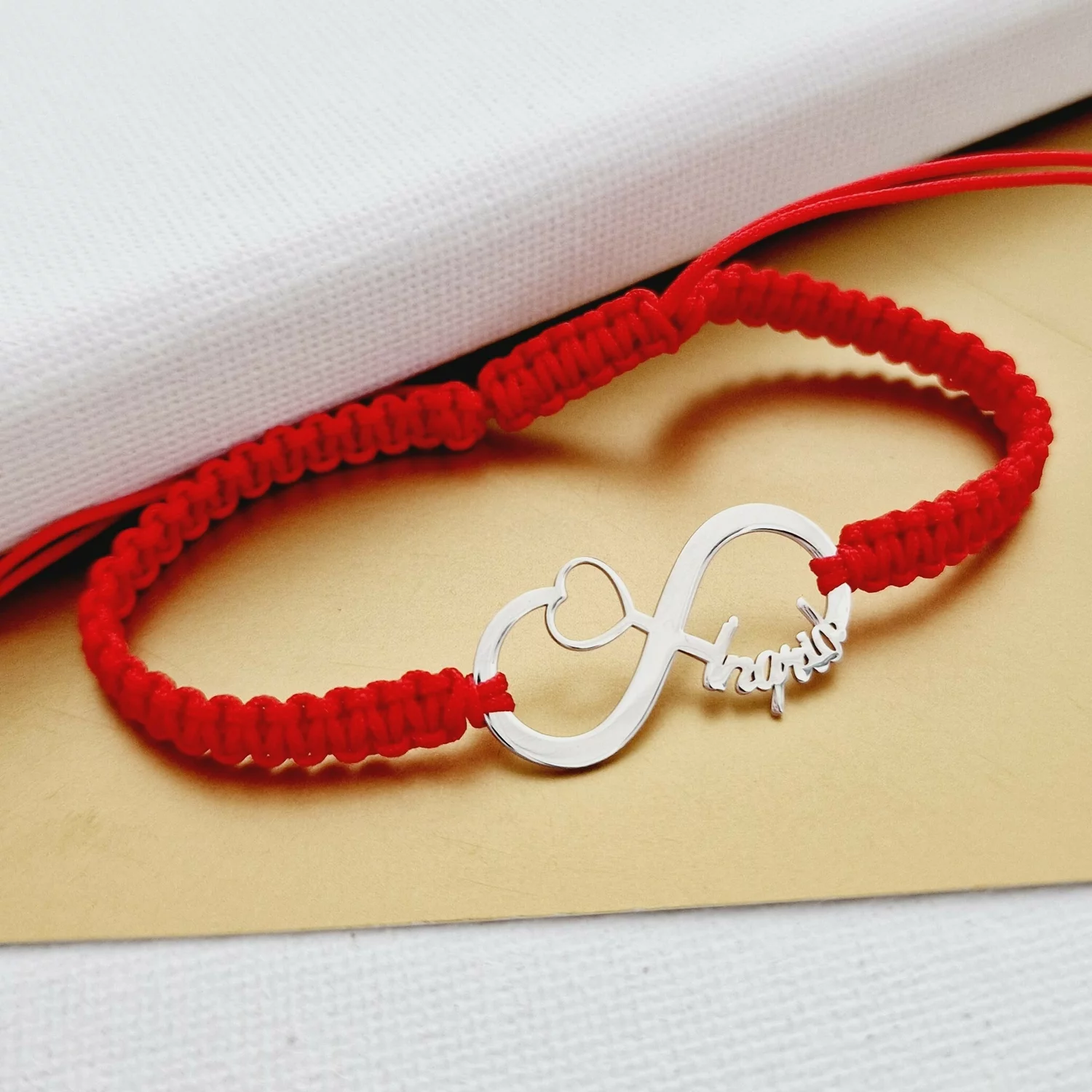 Bratara personalizata - Infinite love cu nume decupat - Argint 925 - Snur impletit, diverse culori