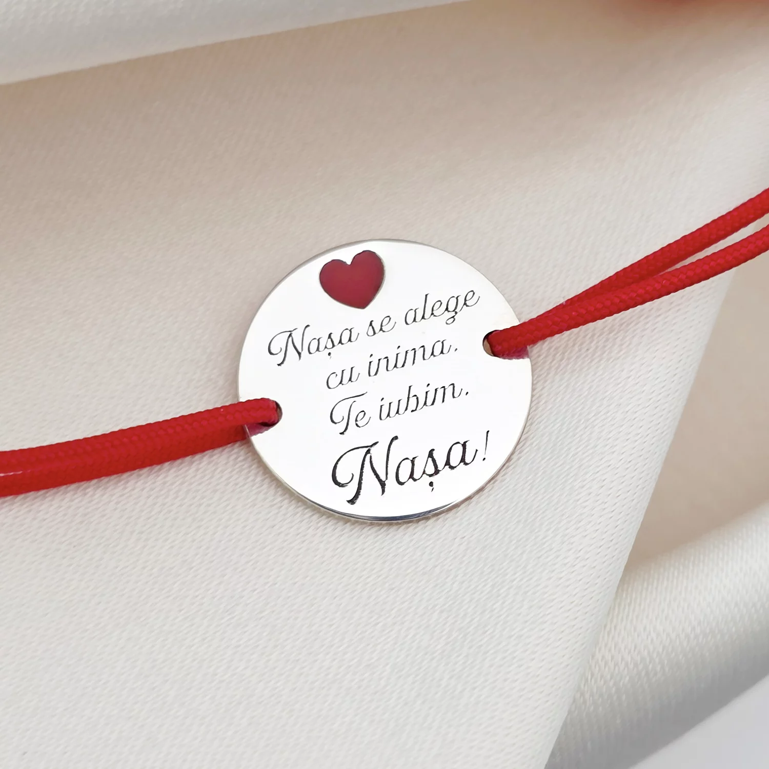 Bratara Nasa mea - Argint 925 - Inimioara cu email rosu - Snur reglabil, diverse culori