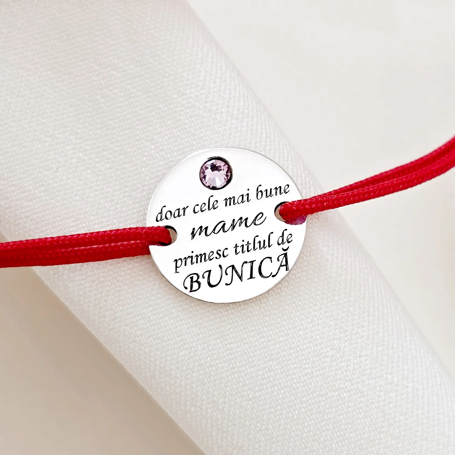 Bratara Titlul de Bunica - Argint 925 si Cristal Swarovski - Snur reglabil, diverse culori