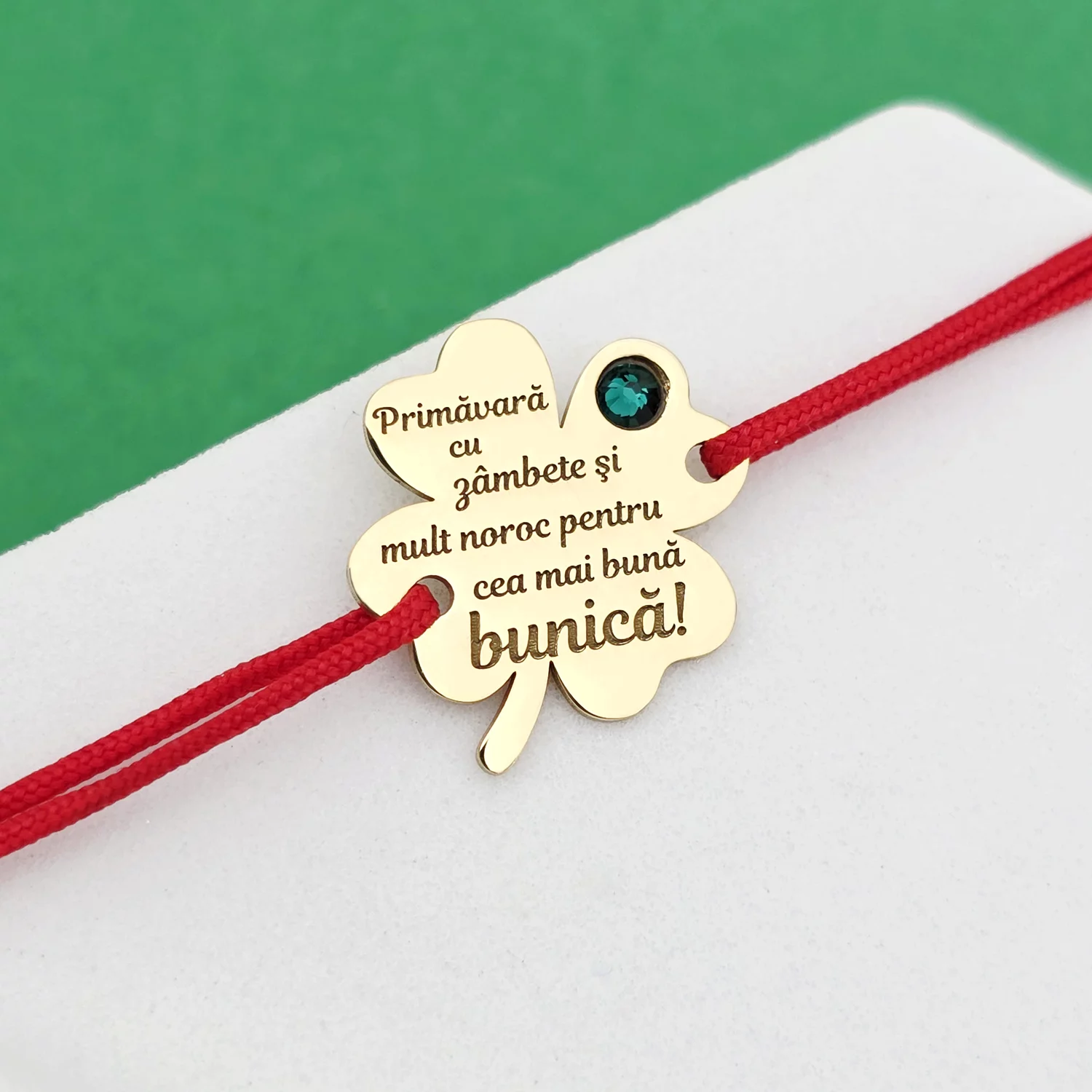 Bratara Trifoi - Primavara cu zambete - Argint 925 si Cristal Swarovski - Snur reglabil, diverse culori