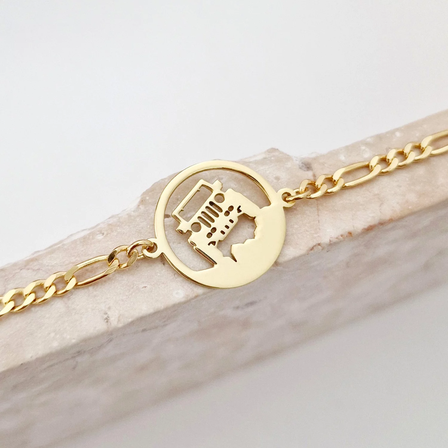 Bratara personalizata - Disc decupat cu simbol masina off road - Argint 925 placat cu Aur Galben 18K - bratara barbati cu lant