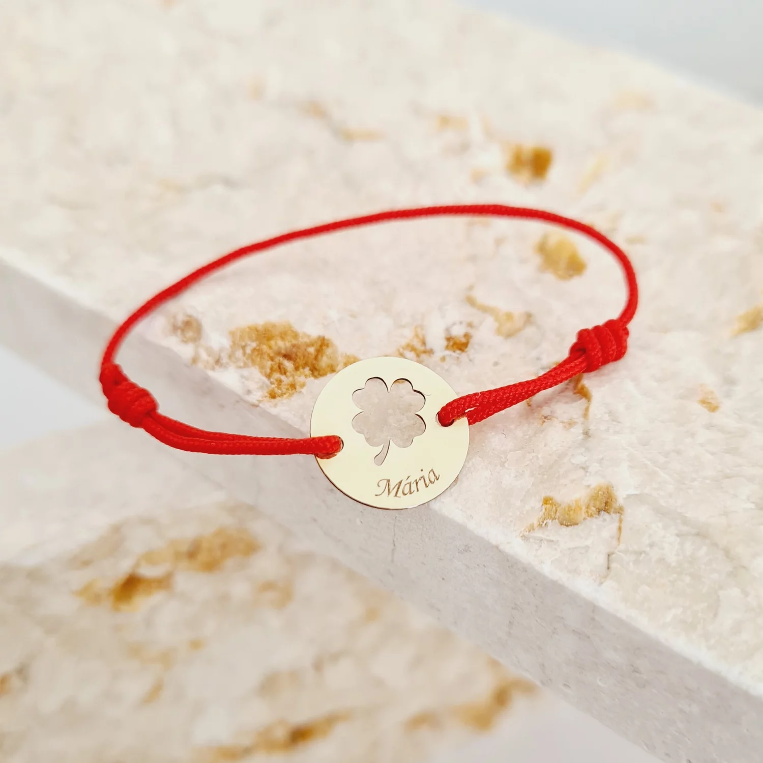 Bratara Good luck - Trifoi decupat si nume - Aur Galben 9K - Snur reglabil, diverse culori