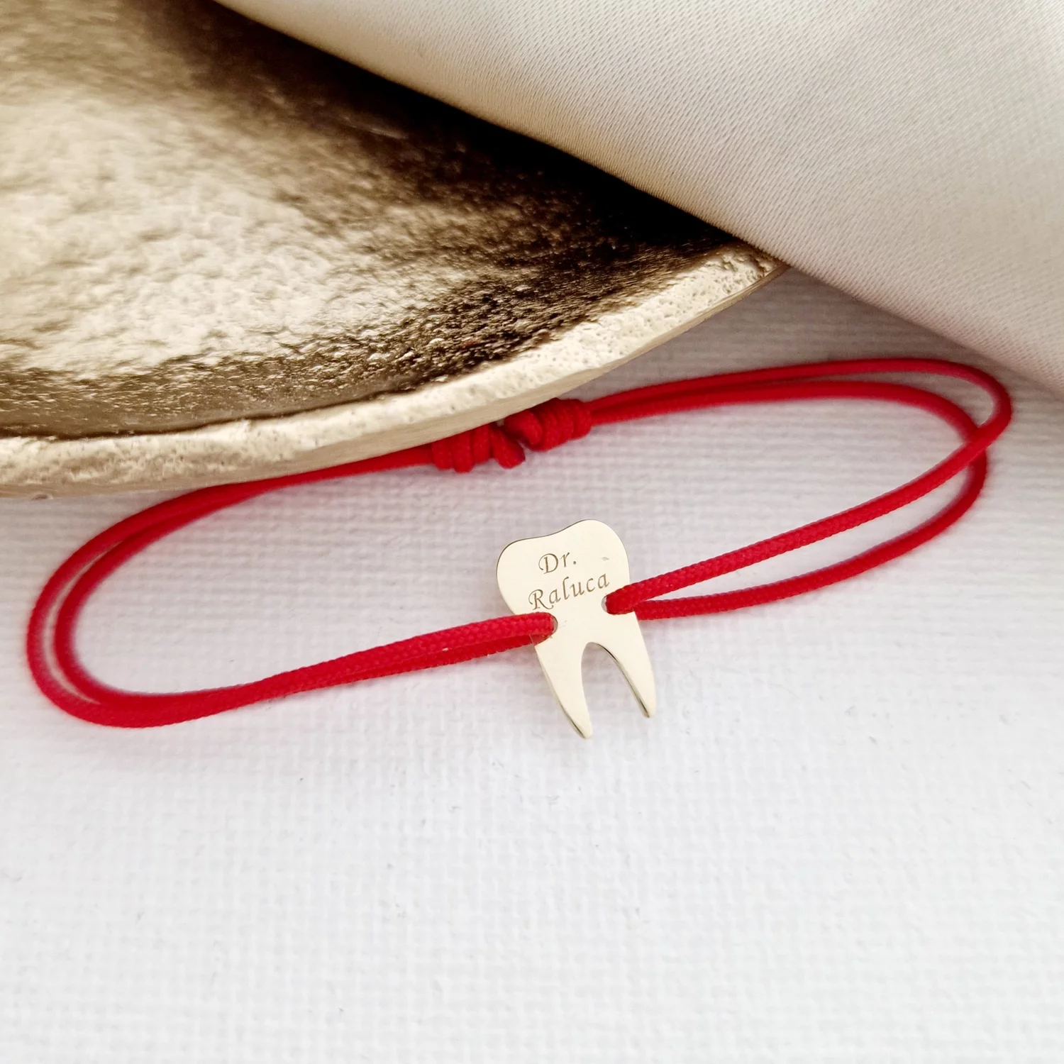 Bratara dinte - Aur Galben 9k - Snur reglabil, diverse culori