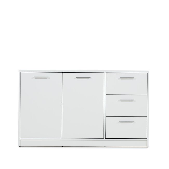 Comodă Brema cu 3 uși și 2 sertare, finisaj mat și spațiu generos, 138x41x81 cm, alb