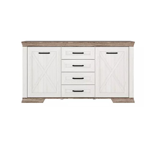 Comodă Marsel KOM2D4S, 2 uși și 4 sertare, design minimalist, MDF și PAL, 166x89x45 cm, alb frasin