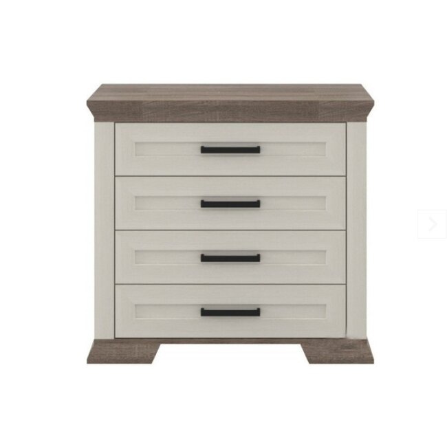 Comodă Nicky, Cu 4 Sertare Și Design Elegant, PAL, 80.5x120x45 cm, Alb-Stejar