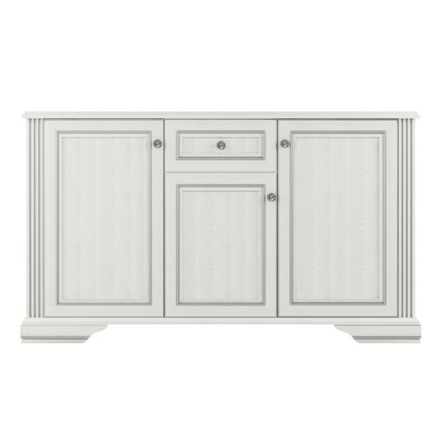 Comodă White 3D1S, 3 uși și 1 sertar, MDF frezat și PAL melaminat, 160x45x93 cm, frasin alb și pin argintiu