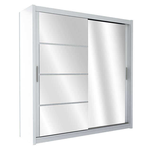 Dulap Dakota cu usi glisante si oglinzi din PAL, 2,03x0,61x2,15 m, alb