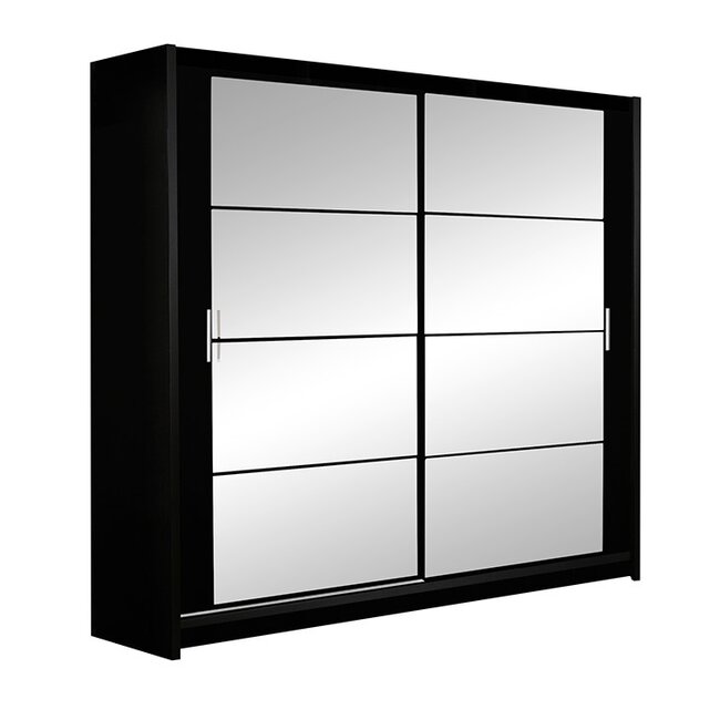 Dulap Dakota cu usi glisante si oglinzi din PAL, 2,03x0,61x2,15 m, negru