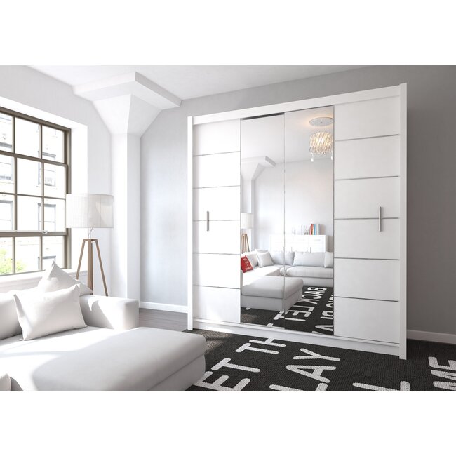Dulap Brema cu usi glisante si oglinda din PAL, 2,55x0,65x2,19 m, alb