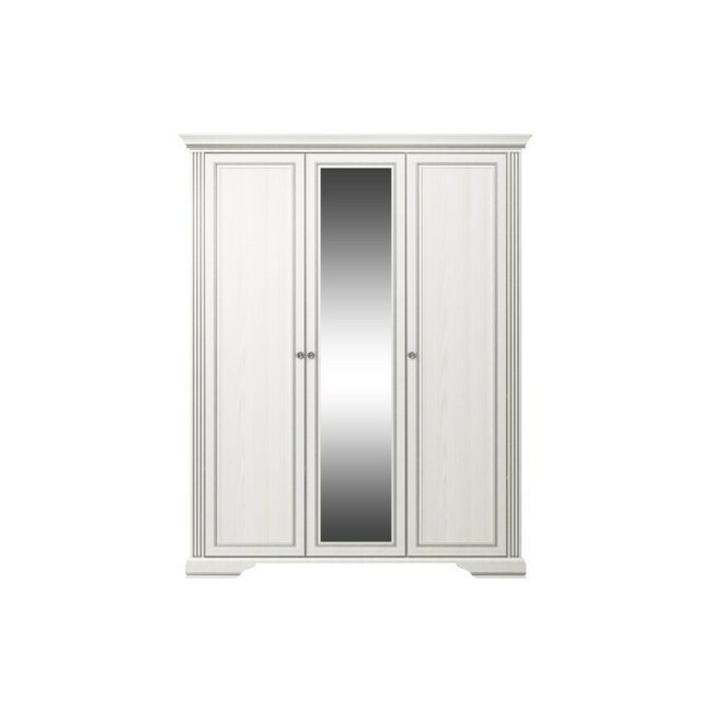 Dulap White 3D(2S), 3 uși, 2 sertare, MDF frezat și PAL melaminat, 176x63.5x221 cm, frasin alb și pin argintiu