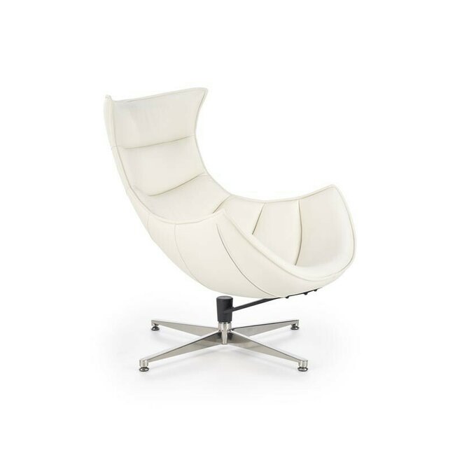 Fotoliu Luxor, spătar ergonomic și design modern, piele și oțel inoxidabil, 86x84x96 cm, alb
