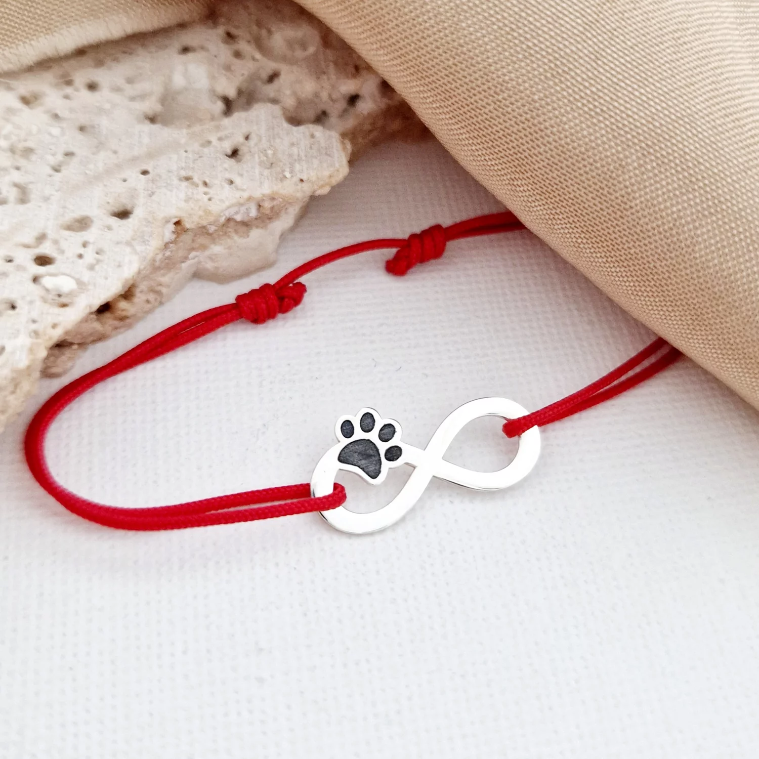 Bratara infinit cu labuta - Argint 925 - snur reglabil, diverse culori