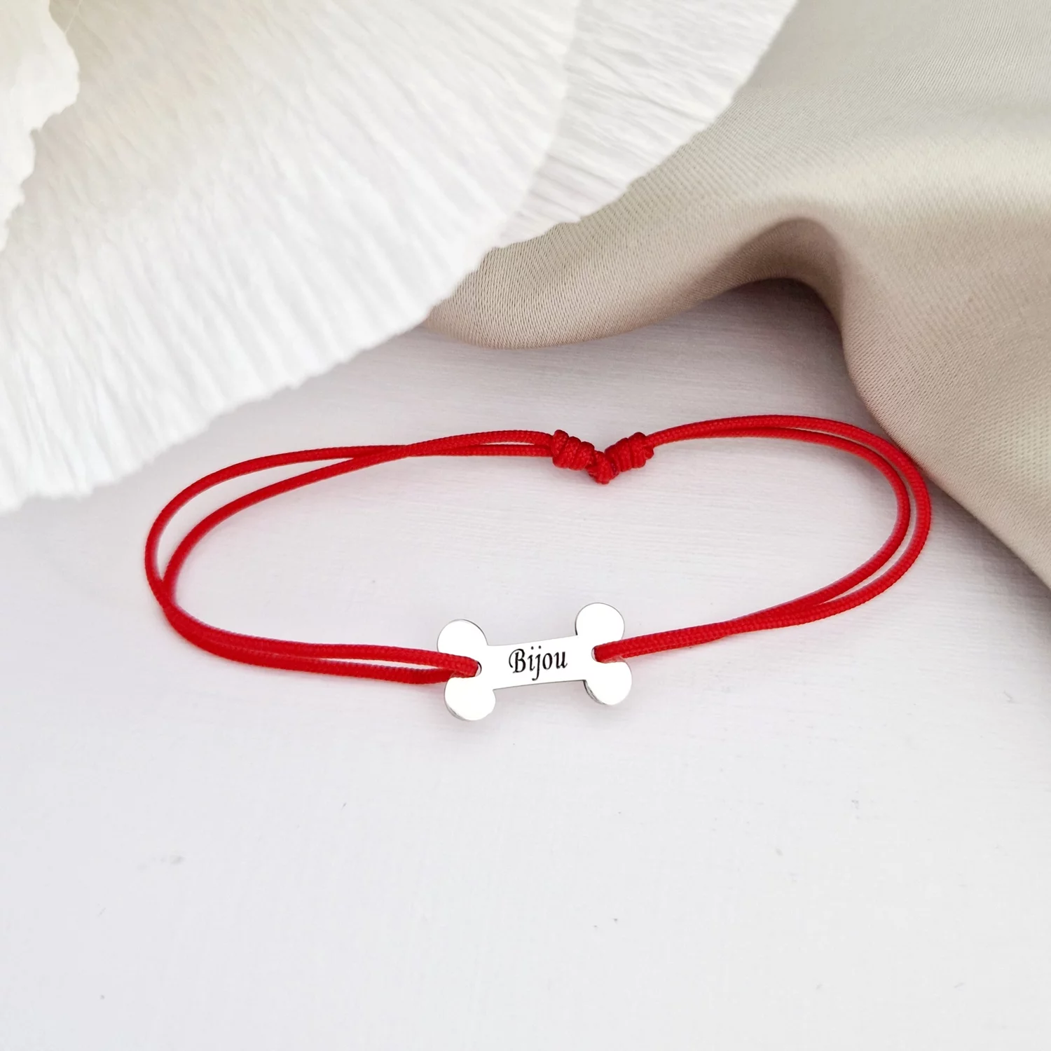 Bratara personalizata cu pandantiv Os - Argint 925, snur reglabil diverse culori