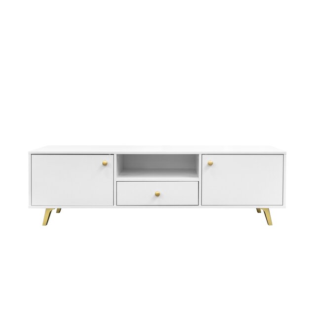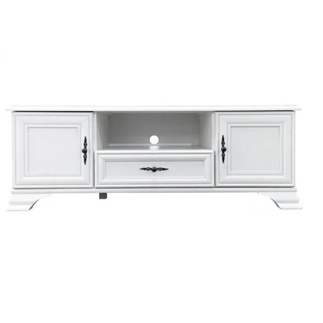 Comodă TV Idento RTV2D1S, design clasic cu sertare spațioase și spațiu deschis, PAL laminat și MDF, 144x44x54 cm, alb alpin