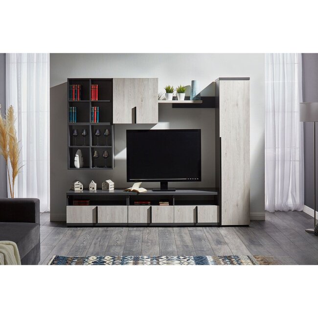 Living Geneva Modular, PAL Laminat, 335x50x207 cm, Gri Grafit și Stejar Craft Alb